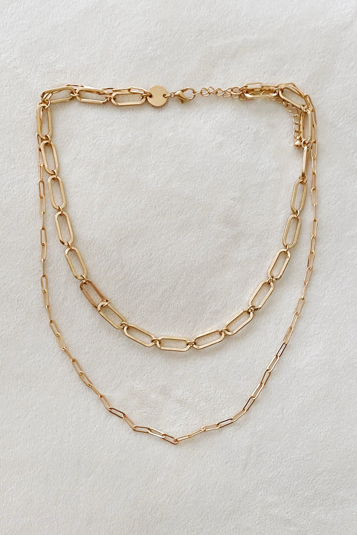 Be on trend with this beautiful layered link chain necklace. Lightweight and worn gold finish.