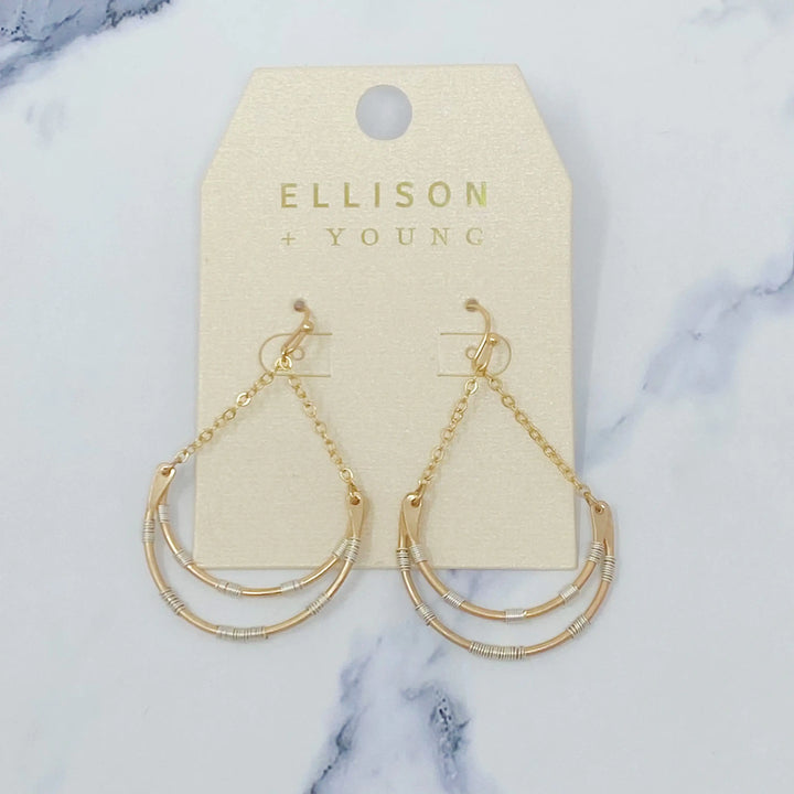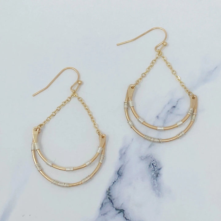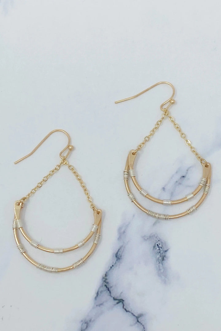 Beautiful chandelier drop earrings in wired details in gold and silver combinations. Dimensions: approximately 1" x 2 " Lead and Nickel compliant Designed in US, Made in China