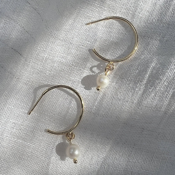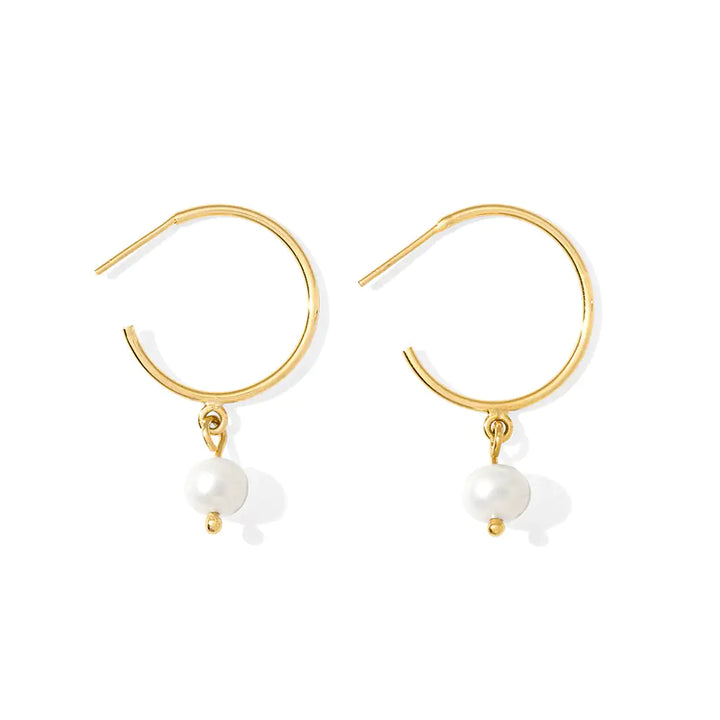 Add timeless elegance to your collection with the Freshwater Pearl Hoop Earrings, handcrafted by skilled artisans using recycled bombshell brass and bullet casings. Each pair is delicately finished with 14K gold plating for a long-lasting shine and adorned with luminous freshwater pearls for a refined touch.