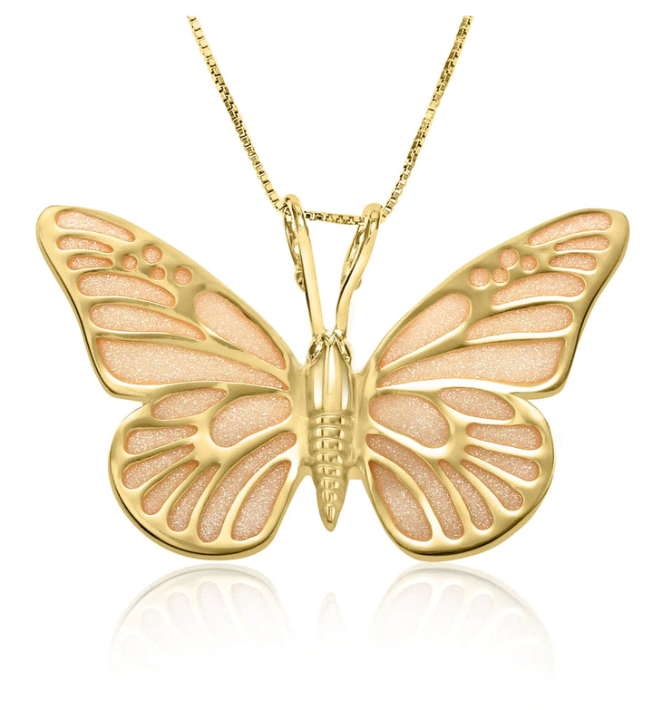 Experience the enchantment of our Astonishing 24k Gold-Plated Butterfly Necklace, a mesmerizing blend of artistry and elegance. Crafted from exquisite 925 sterling silver, this necklace features a captivating butterfly adorned with meticulously handcrafted polymer clay patterns that accentuate its graceful form. A symbol of good luck and transformation, this charming talisman invites you to embrace the delicate flutter of your own journey, while the radiant 24k gold plating adds a touch of opulence. Let this necklace become a cherished emblem of beauty, luck, and the boundless wonder of nature.