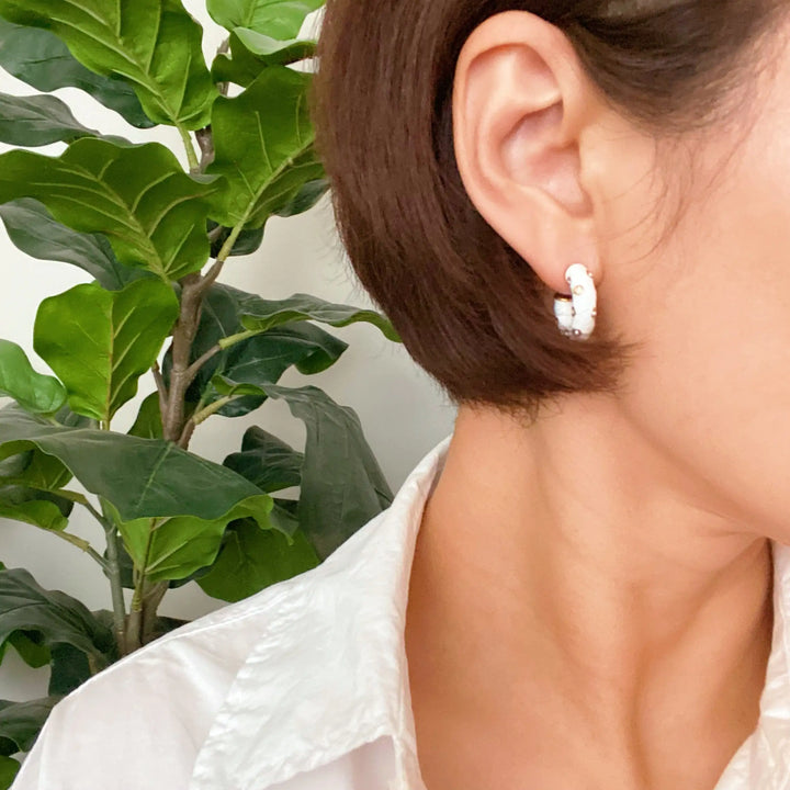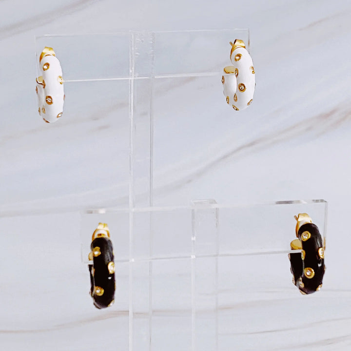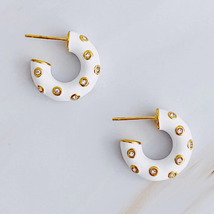 Jeweled Candy Hoop Earrings – 18K Gold-Plated Enamel with Cubic Zirconia