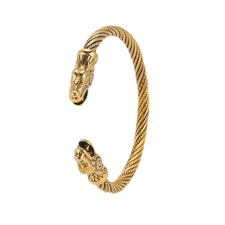 [Material: Upgraded viking twisted bracelet made of stainless steel perfectly polished beautifully shiny and pleasant to the touch and will not fade Dimension: The viking animal head bracelet measures 2.75 inches in diameter and 0.24 in thickness and can adjustable according to your wrist size Meaning of Viking Bracelets: The viking bracelet symbolises the courage of the Norse gods and is the key for the souls of viking warriors to enter the Hall of the Spirits after they have died in battle. Stylish & Eye-Catching: You can wear the nordic pirates cuff bangle as an amulet and can be combined into any outfits. If you want to be a standout for any big and small event you attend from formal occasions to meeting friends this viking jewelry accessory is probably a worthy choice for you to consider "Ideal Gift Choice: The Viking-themed bangle is a good choice for parties holidays travel and daily life. It is a surprise for your loved ones on Christmas birthday anniversary celebration Valentines Day wedding engagement congratulations party"]