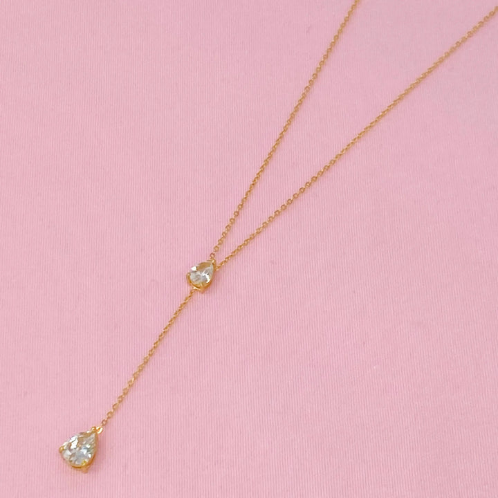 Absolutely beautiful 2 different tear drop solitaire Cubic Zirconia stones make a perfect harmony in this necklace. Gorgeous with dainty chain and shines beautifully!