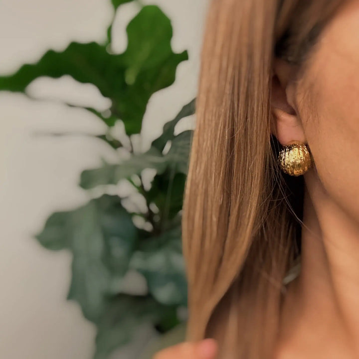 These Textured Half Hoop Earrings are a modern and stylish addition to any jewelry collection. The textured design adds visual interest, while the half ball shape is perfect for everyday wear.