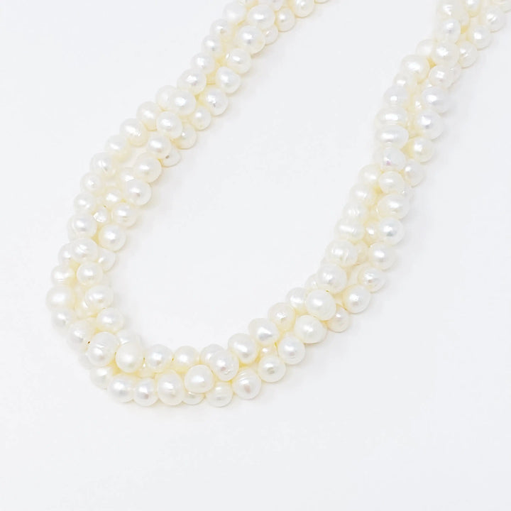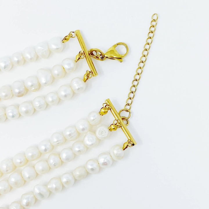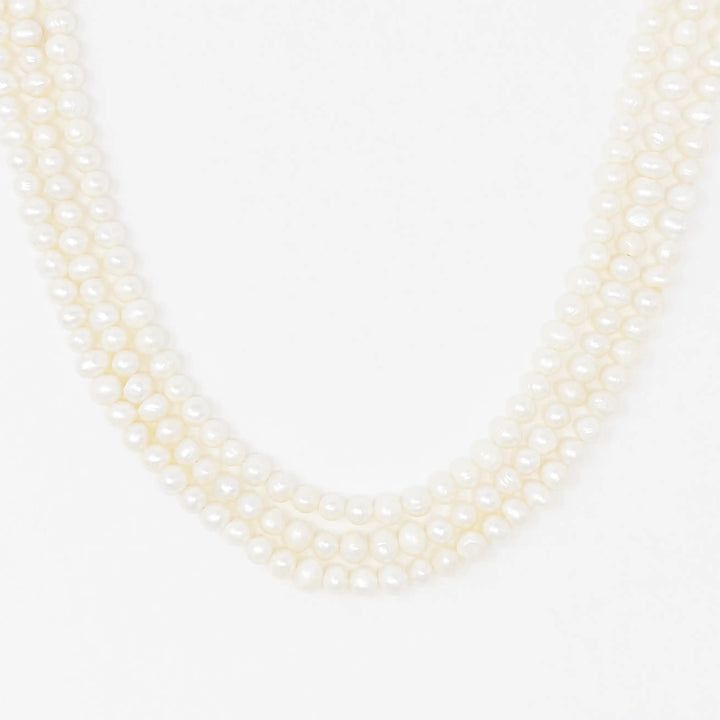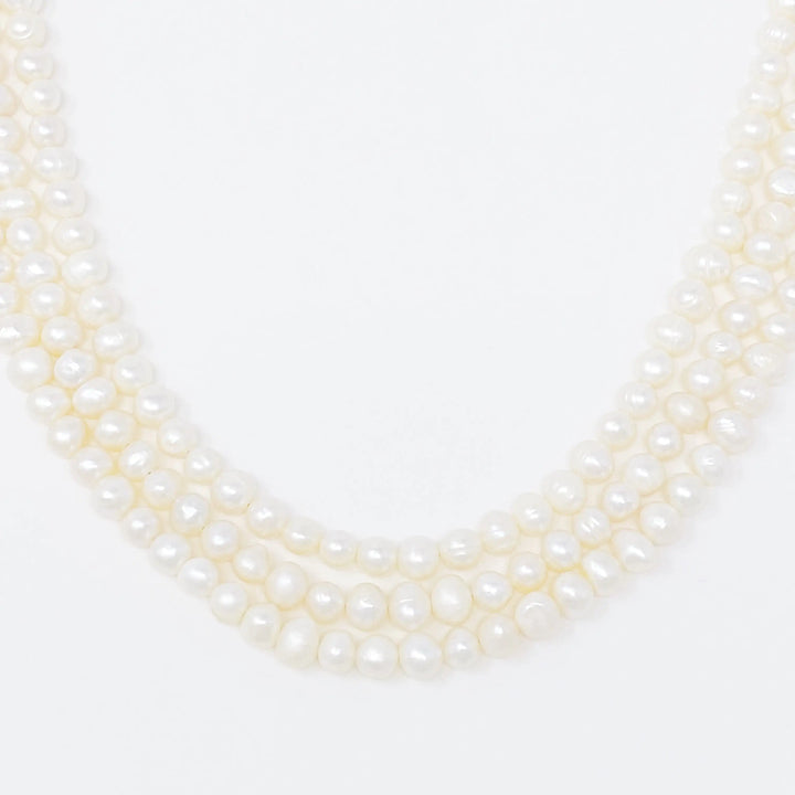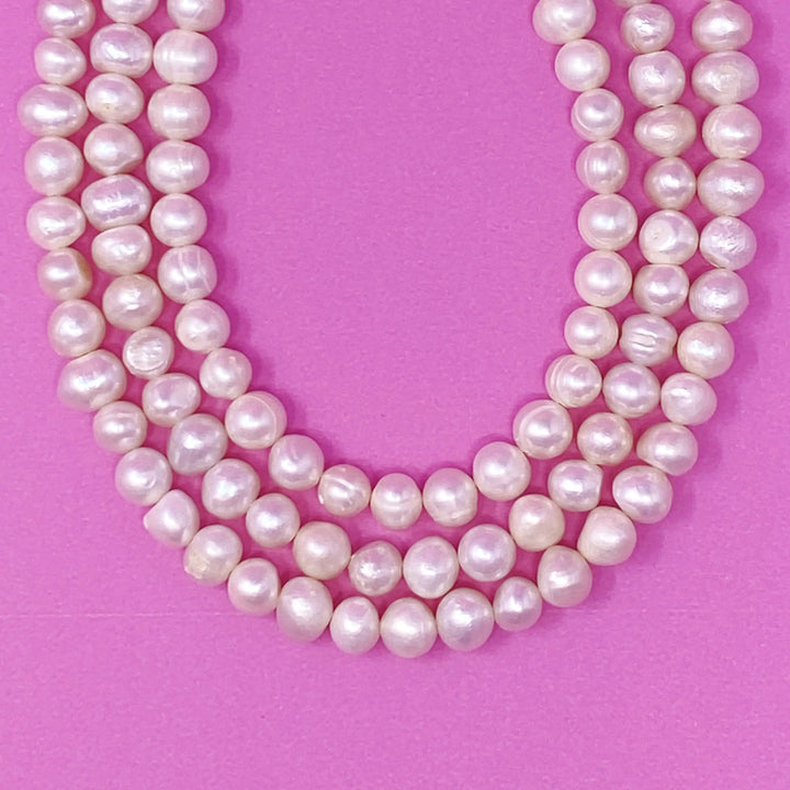 This genuine freshwater pearl necklace is absolutely stunning! 3 strands come in this one piece and great to dress up or down! Each pearl may have slightly different shapes and sizes...